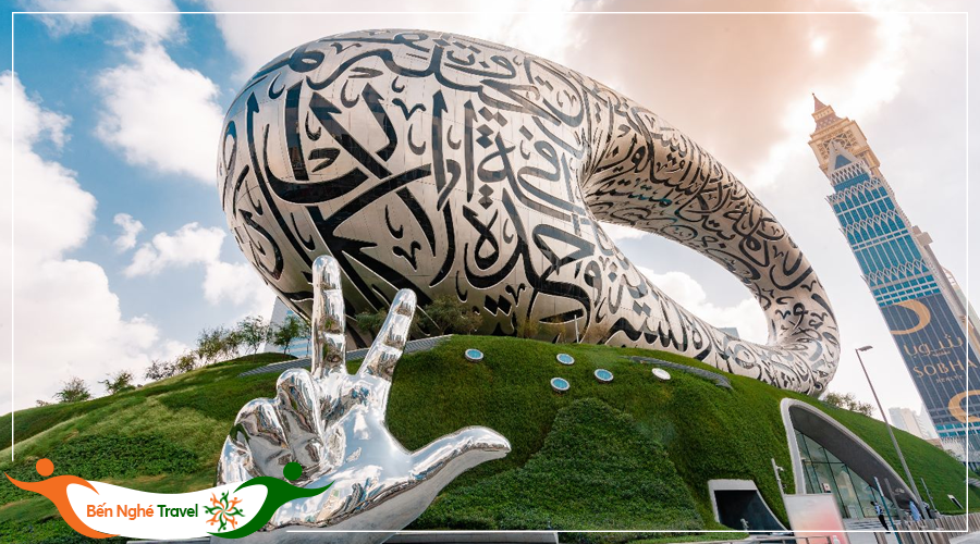 + Bảo tàng Tương Lai do kiến trúc sư Shaun Killa của Killa Design và được Tổ chức Tương Lai Dubai ủy quyền. Đây là một trong những công trình độc nhất tại Dubai. Bảo tàng kim loại 7 tầng cao 77m, thiết kế hình elip và được trang trí bởi 14.000m thư pháp Arab trên nền thép không gỉ (Chụp ảnh bên ngoài).